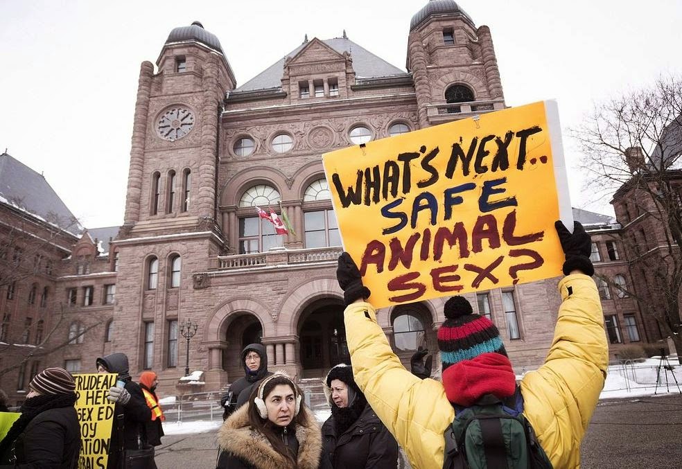 У Торонту су на протест изашли сви: Англосаксонци, Кинези, муслимани разних националности, Руси, Грци, имигранти из Африке... Средином априла ове године одржан је митинг против новог програма за сексуално образовање на којем је своје мишљење изразило око пет хиљада људи. «We say “No!”» («Кажемо: ‘Не’!») – тако гласи слоган читаве огромне кампање против сексуалног образовања.