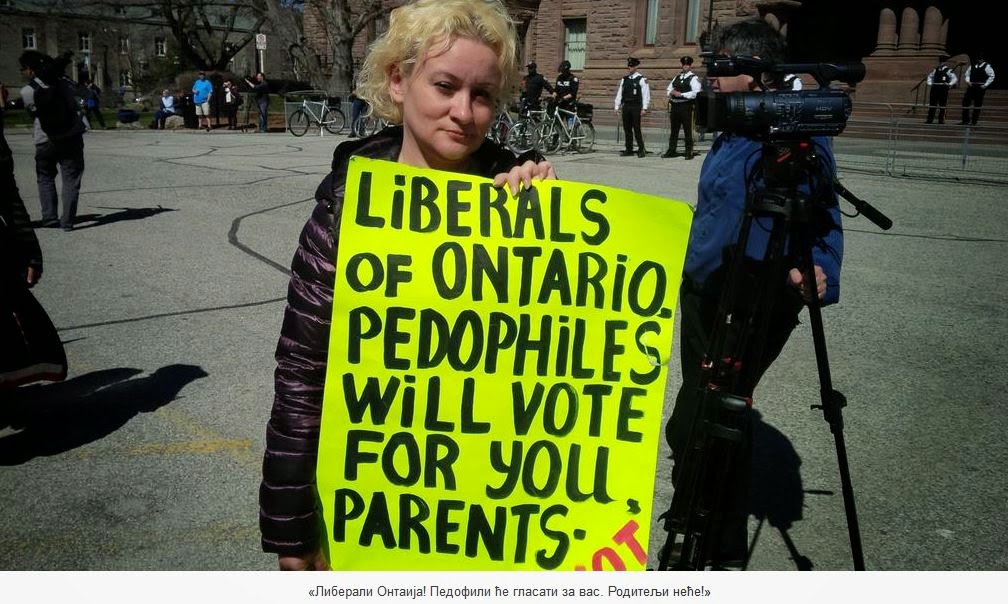 Родитељима из Торонта се мора признати: они негодују. Прошле недеље у школе у Торонту није дошло 35 хиљада деце! Родитељи су их задржали код куће у знак протеста против новог програма сексуалног образовања по којем ће деци у првом разреду објашњавати шта су «вагина», «вулва», «пенис» и «сексуални склад», трећацима ће позитивно говорити о хомосексуализму и истополним «породицама», шестацима ће о мастурбацији причати као о «пријатном начину за упознавање свог тела», а седмацима и осмацима – о оралном и аналном сексу. Планирано је још да се деца упознају с «теоријом полова» по којој их нема два, већ много. И ти ниси обавезно дечак или девојчица, већ како се осећаш...